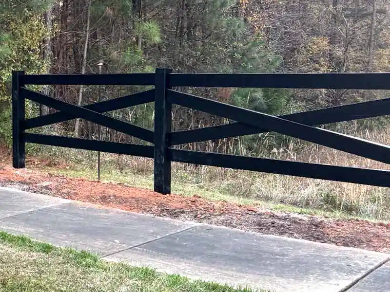 Crossbuck vinyl fences stand out for their X-pattern design, which improves visibility for horses while adding strength by distributing pressure across the panel. This structure provides a clean ranch-style look without sacrificing durability.